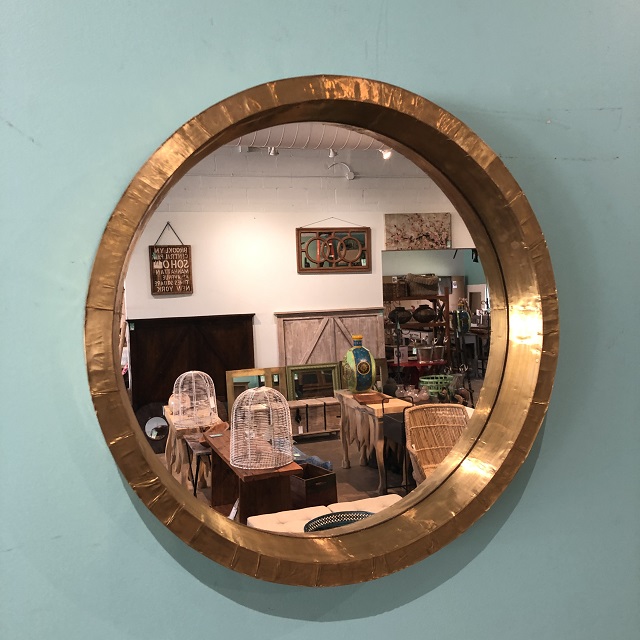 Gold bamboo round mirrored tray.